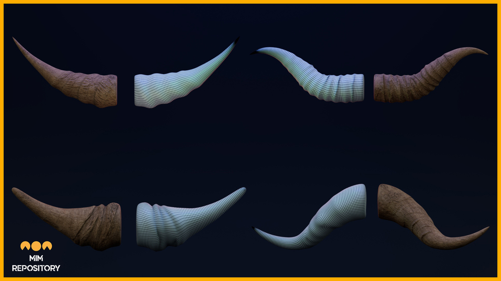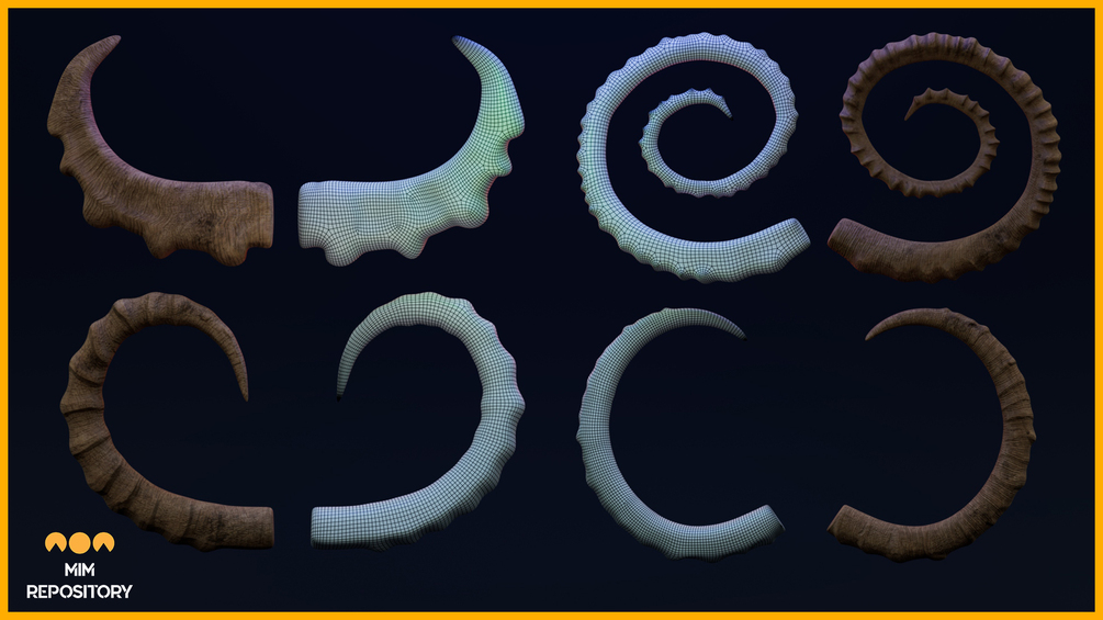 50 highly detailed horns + base meshes (IMM, OBJ, FBX) for saving your valuable time!Β