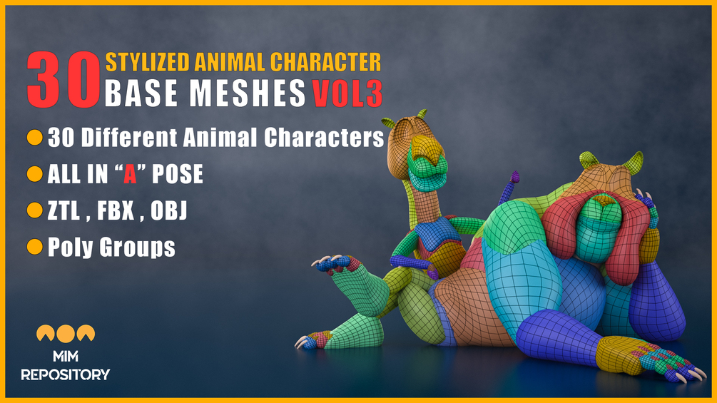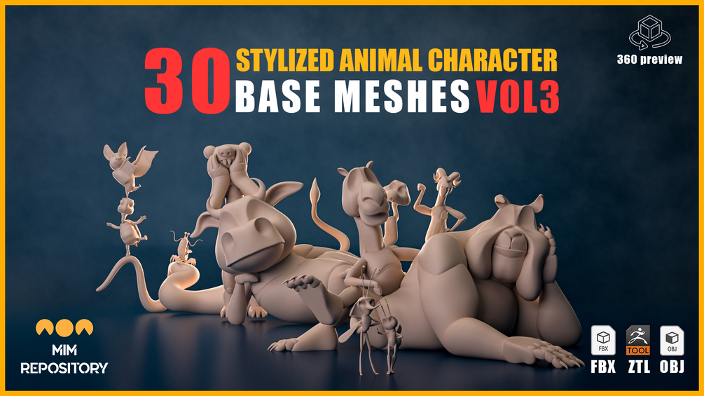 πŸ“£30 Stylized Animal Character Base Meshes-VOL 3πŸ“£