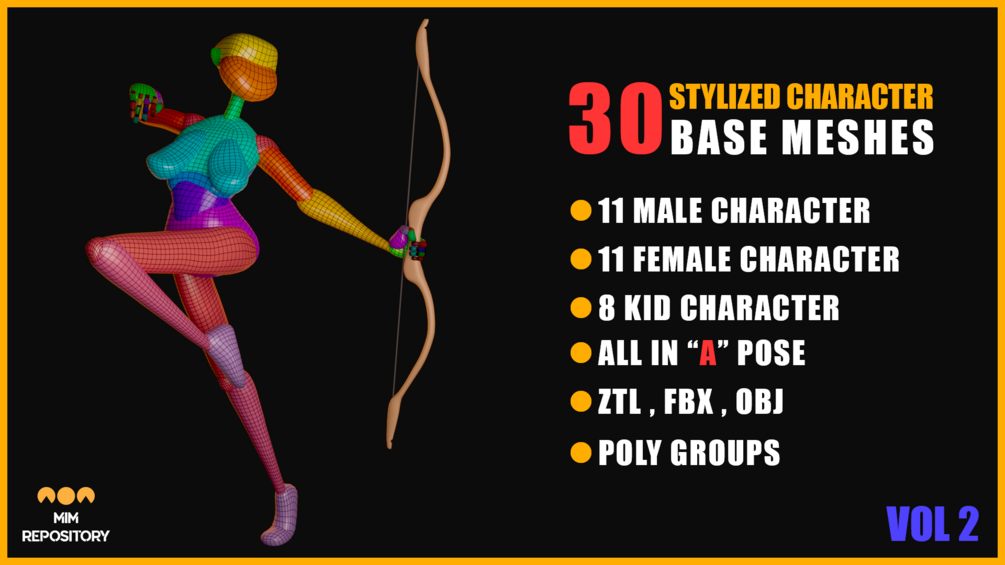 - 11 male base meshes + 11 female base meshes + 8 kid base meshesÂ